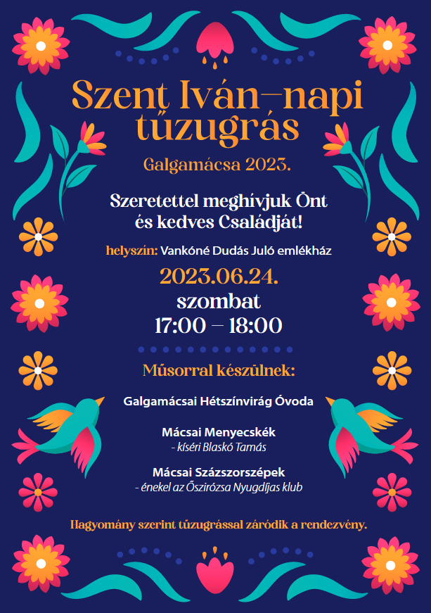 Szent Iván-napi tűzugrás | Galgamácsa, 2023. 2023-06-08 Tájékoztatók, felhívások, meghívók Megtekintések: 516