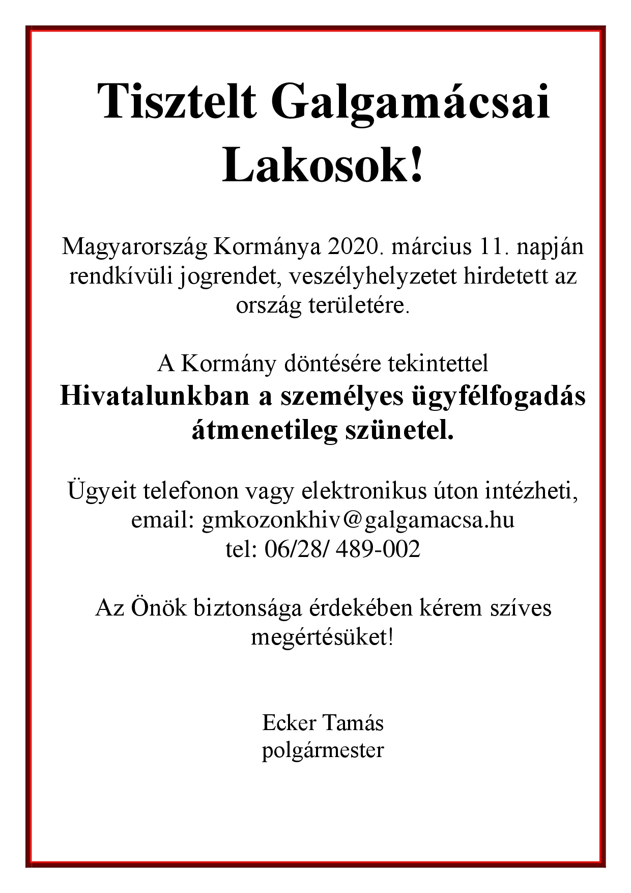 Elérhetőség, ügyintézés