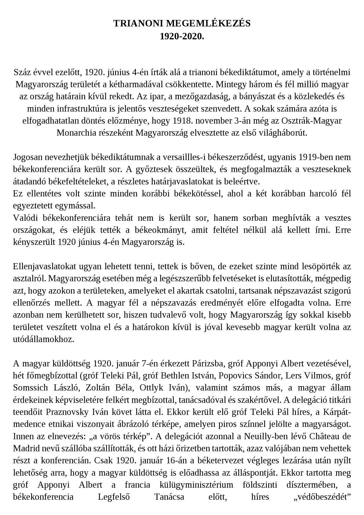 Trianoni megemlékezés