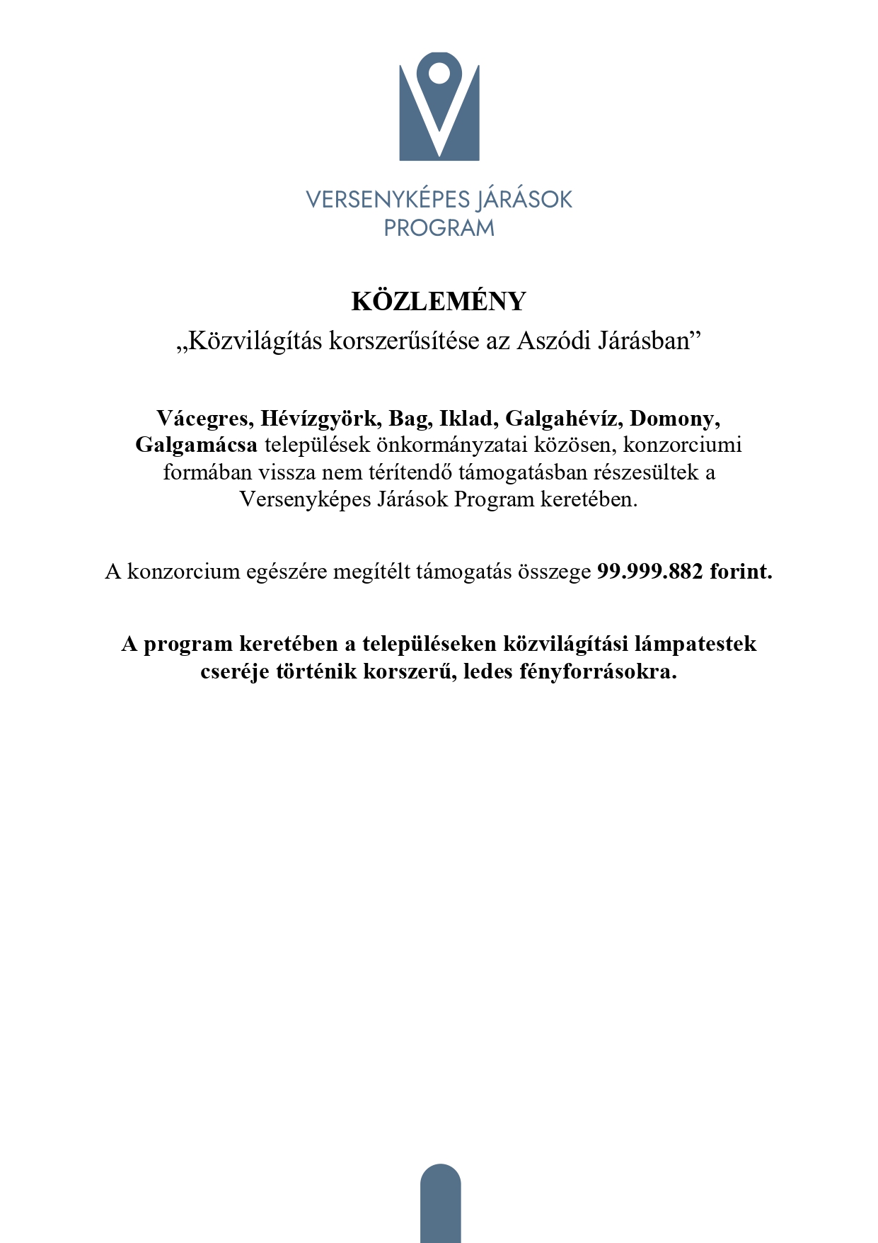Közvilágítás korszerűsítése az Aszódi Járásban - Versenyképes Járások Program 2025-11-17 Önkormányzati hírek Megtekintések: 168