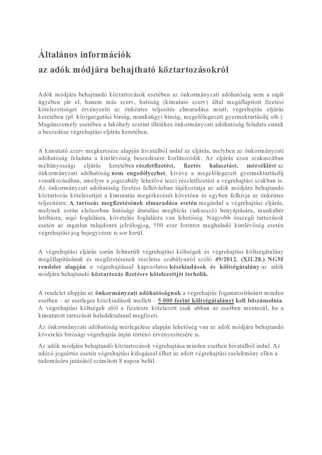 Adók módjára behajtandó köztartozásokról tájékoztató